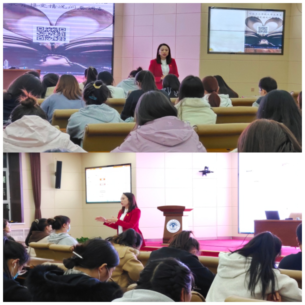 同时,祝琳琳老师从两个环境向大家介绍了身边的实例:一是党的十八大以来公开庭审的落马高官和个别为官不正的官员的忏悔录;二是校园里因盲目的攀比之风引发的校园贷、员工干部官僚主义、员工诚信缺失以及老员工网络舆情问题的典型案例。这些事例时刻提醒着同学们要警钟长鸣,为人清正。