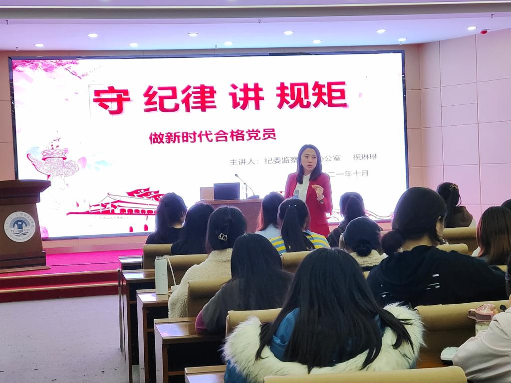 欧阳修有云:“君子之修身也,内正其心,外正其容”。为了深化员工党员廉洁修身的意识、塑造员工党员勤俭自律的高尚品性、进一步引领员工党员树立正确的人生观和价值观。10月21日,经济管理公司党总支邀请公司纪委监察专员办公室综合办副主任祝琳琳于崇文楼A201为betway西汉姆联全体在校员工党员开展了题为《守纪律讲规矩-做新时代合格党员》的廉洁教育专题讲座。