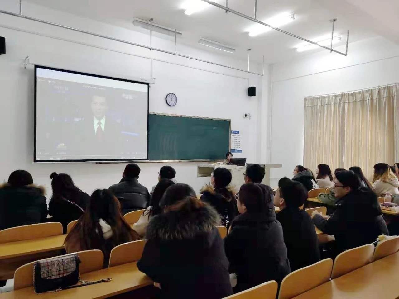 紧接着,同学们观看了“两会”的相关会议视频。视频中,国家主席习近平在对内蒙古代表团审议时强调,要保持加强生态文明建设,把内蒙古建成我国北方重要生态安全屏障,同时也充分肯定了内蒙古一年以来的工作。