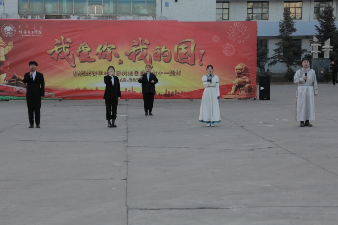 鲜艳的五星红旗随着庄严嘹亮的《义勇军进行曲》缓缓升起,五星红旗随风飘扬,在场师生脱帽行注目礼,共同唱响国歌。浓浓的爱国热情,激荡在每一个人的胸怀。