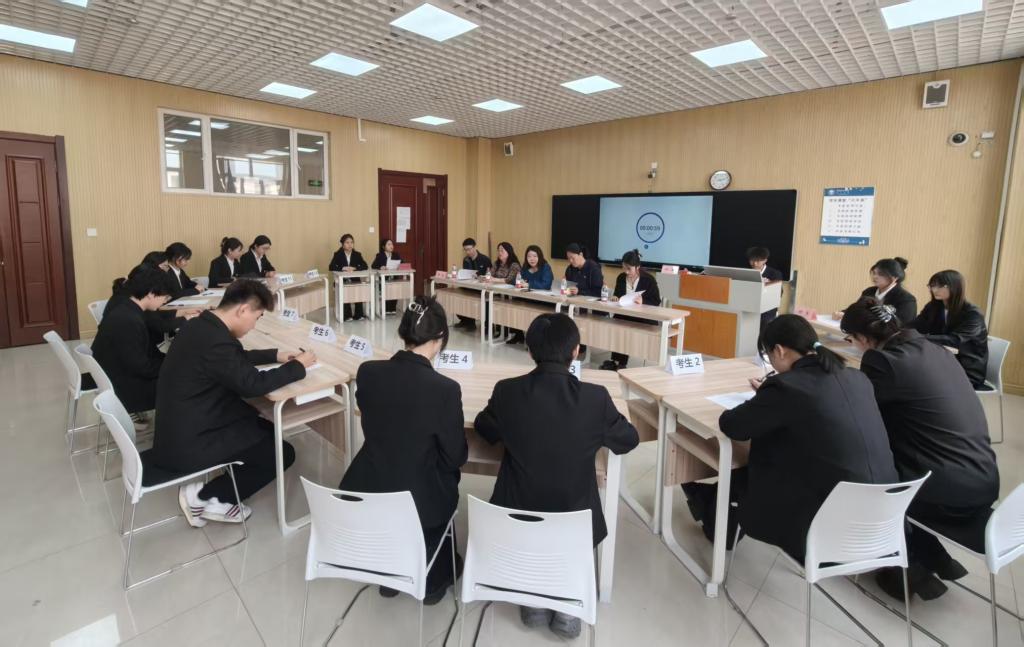 此次复赛采用无领导小组面试与开放式问答相结合的形式。大赛邀请浦发银行呼伦贝尔分行会计主管王丹、综合柜员嘉豪、金鑫化工有限公司会计主管张振宇、呼伦贝尔游牧之旅国际旅行社有限公司副总经理王三军、呼伦贝尔市龙凤新天地购物广场楼层经理位科慧,公司党总支书记李静、副书记董慧及任课教师担任评委。