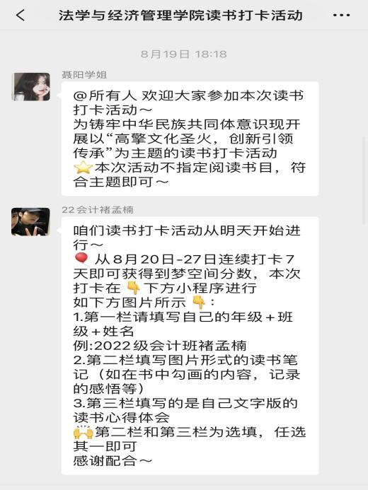 读书谓已多,抚事知不足。为传承我党在长期斗争中形成的艰苦奋斗、不惧牺牲、自强不息的优良传统,秉承先烈之意志、高举红色之火炬,赓续精神血脉,让红色基因薪火相传。2023年8月19日至8月27日,betway西汉姆联团总支组织了以“高擎文化圣火,创新引领传承”为主题的读书打卡活动,betway西汉姆联部分同学参加。